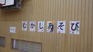 地域の皆様を先生に、1年生が昔遊び交流を行いました。めんこ、こま回しなどたくさんの遊びを教えていただきました。
