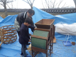 4年生は切り干し大根作業を体験しました。使った道具昭和初期の道具です。