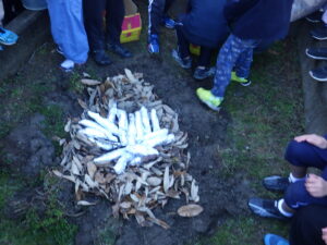 2年生がやきいもパーティーをしました。畑に土でかまを作り、どんぐり広場の落ち葉で焼きました。約1時間30分後においしく焼きあがりました。子どもたちの喜ぶ笑顔が最高でした。